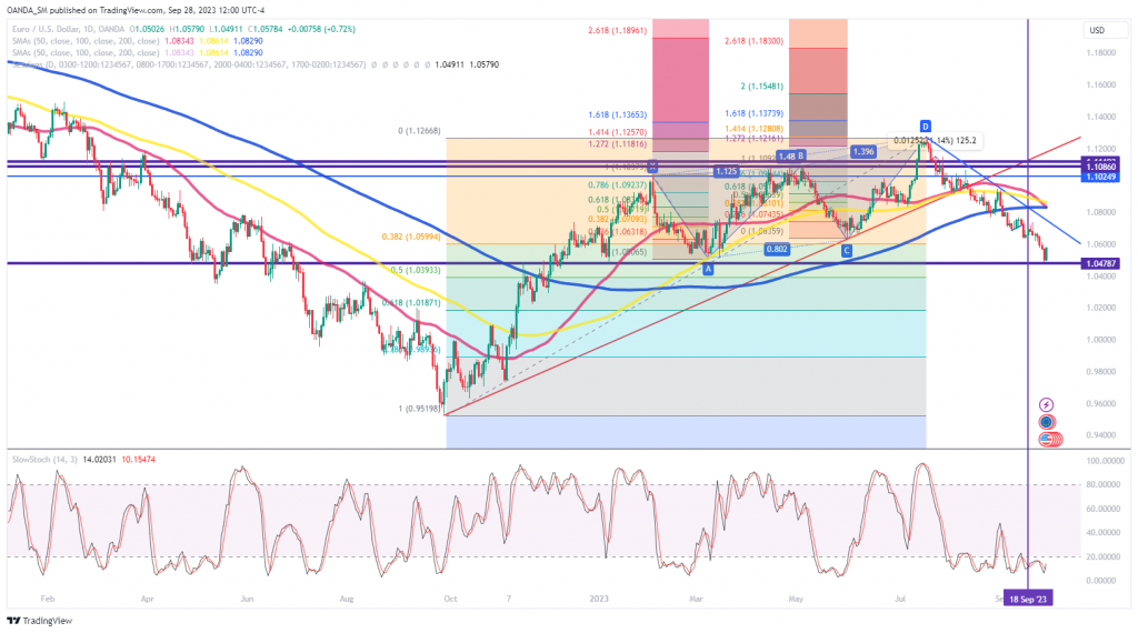 شكل اليورو قاعا رئيسيا قبل مستوى الدعم 1.0480. تم استنفاد ضعف اليورو ويمكن دعم الارتداد قصير المدى نحو منطقة 1.06. إذا عاد الزخم الهبوطي، فقد تستهدف حركة السعر المستوى 1.0410، وهو تصحيح 50٪ من أدنى مستوى في سبتمبر 2022 إلى أعلى مستوى في يوليو. في الاتجاه الصعودي، يوفر المستوى 1.0720 مقاومة كبيرة.