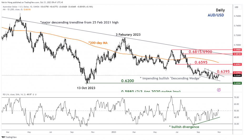 الشكل 1: الاتجاه متوسط المدى لزوج الدولار الأسترالي / الدولار الأمريكي اعتبارا من 31 أكتوبر 2023 (المصدر: TradingView ، انقر لتكبير الرسم البياني)