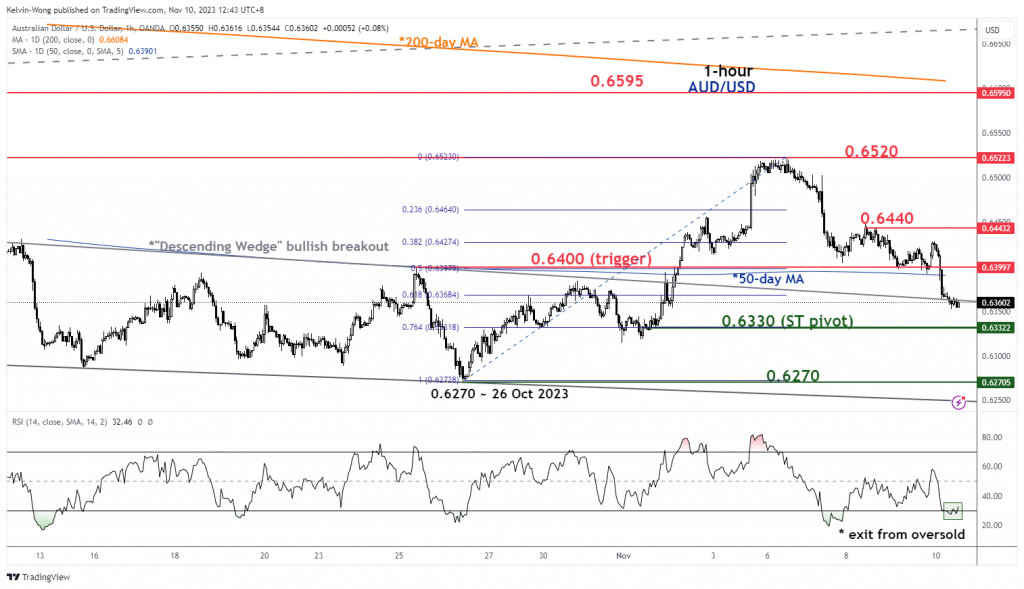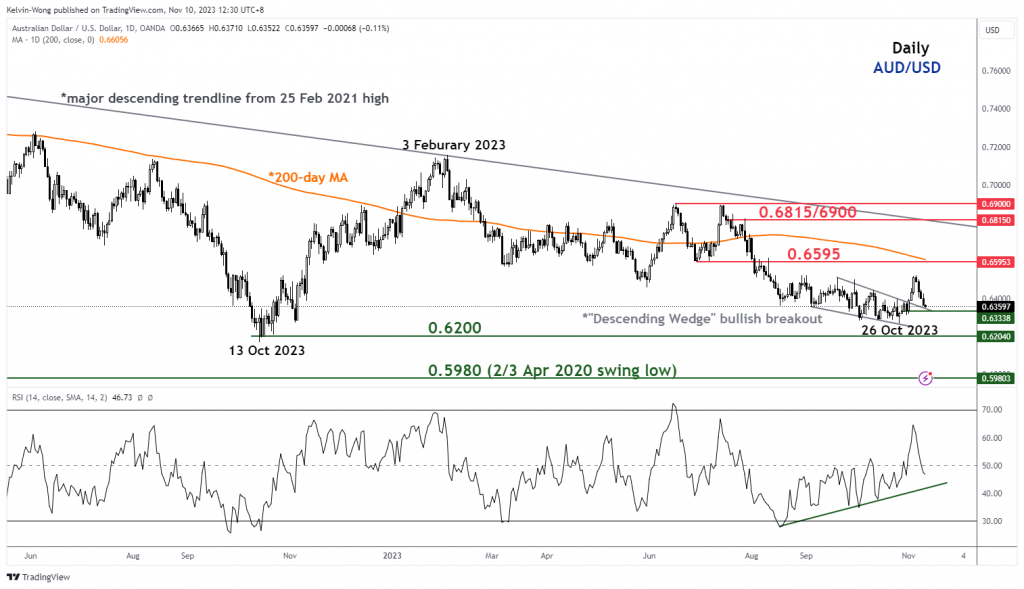 • هذا تحليل متابعة لتقريرنا السابق ، "AUD/USD الفني: AUD/USD الفني: تم بالفعل تسعير رفع بنك الاحتياطي الأسترالي ، وانخفاض تصحيحي طفيف في التقدم" نشر في 7 نوفمبر 2023. نقر هنا للحصول على ملخص.