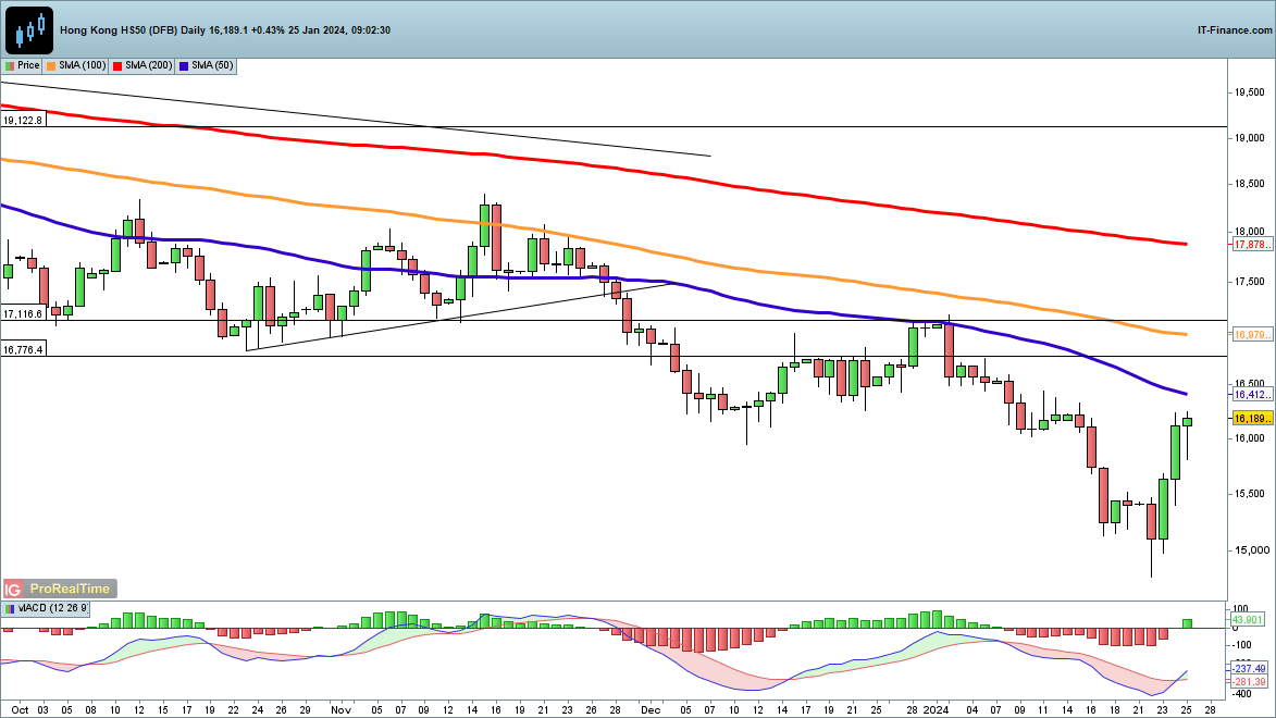 ساعد خفض متطلبات نسبة الاحتياطي المصرفي والتلميحات إلى مزيد من التحفيز الأسواق الصينية على الارتفاع ، بعد أنباء في وقت سابق من الأسبوع عن دعم الأسهم من خلال استخدام الأموال الخارجية من الشركات المملوكة للدولة.ارتفع المؤشر من أدنى مستوى له في عام واحد وعاد فوق 16000. علاوة على ذلك ، يظهر المتوسط المتحرك البسيط لمدة 50 يوما ، بينما يقع أعلى مستوى في يناير عند 17130.