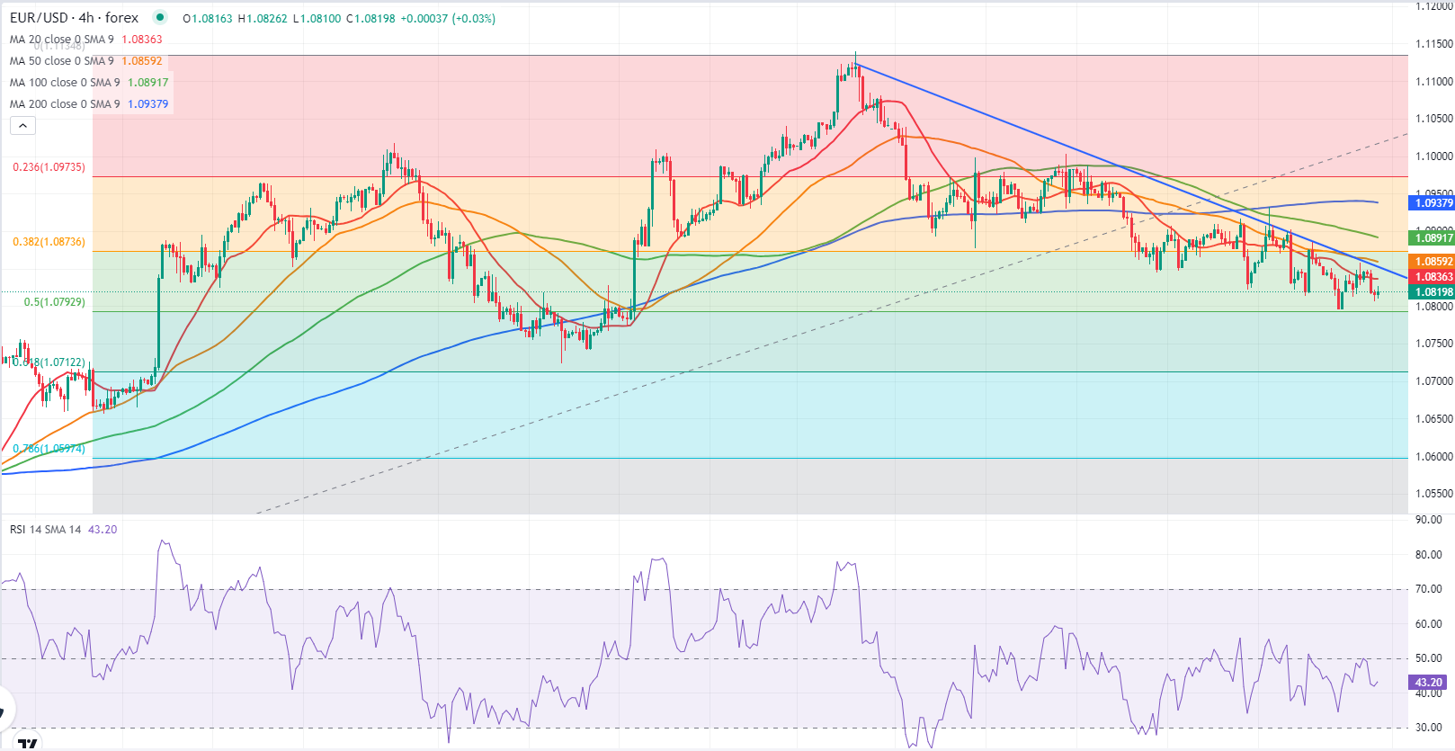 بالنسبة للاتجاه الهابط، تظهر منطقة 1.0800 (مستويات تصحيح فيبوناتشي 50% من الاتجاه الصاعد الأخير) بمثابة منطقة دعم هامة. إذا ارتفع الدولار الأمريكي في حالة ظهور مفاجأة تميل نحو التشديد من قبل البنك الاحتياطي الفيدرالي Fed، فقد يستمر الزوج في الانخفاض نحو منطقة 1.0740 (مستوى ثابت) ومنطقة 1.0700 (مستويات تصحيح فيبوناتشي 61.8٪).