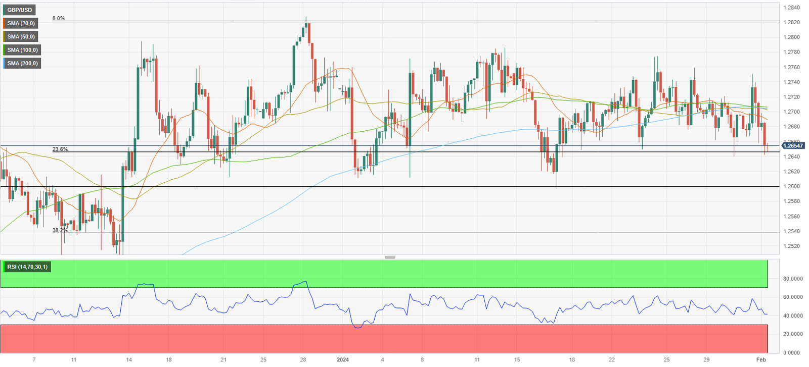 بعد إغلاق اليوم الثاني على التوالي في المنطقة السلبية يوم الأربعاء، واصل زوج استرليني/دولار GBP/USD الانخفاض في وقت مبكر من يوم الخميس وشوهد آخر تداول حول منطقة 1.2650. على الرغم من أن التوقعات الفنية تشير إلى تحيز هبوطي على المدى القريب، إلا أن الزوج يواجه مخاطر في الاتجاهين قبل صدور إعلانات سياسة بنك انجلترا BoE.