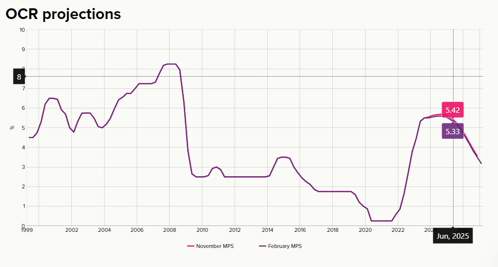 حافظ بنك الاحتياطي النيوزيلندي على سعر الفائدة الرسمي (OCR) عند 5.50٪ كما هو متوقع ولكن ما يتعارض مع وجهة نظر الإجماع هو أحدث توقعات المسار ل OCR. يتوقع بنك الاحتياطي النيوزيلندي الآن أن يكون معدل OCR عند 5.59٪ في يونيو 2024 ، بانخفاض قدره 8 نقاط أساس (bps) عن 5.67٪ السابقة المتوقعة في اجتماع السياسة النقدية في نوفمبر 2023.