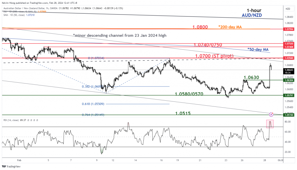 الشكل 3: الاتجاه قصير المدى لزوج الدولار الأسترالي / الدولار النيوزيلندي اعتبارا من 28 فبراير 2024 (المصدر: TradingView ، انقر لتكبير الرسم البياني)