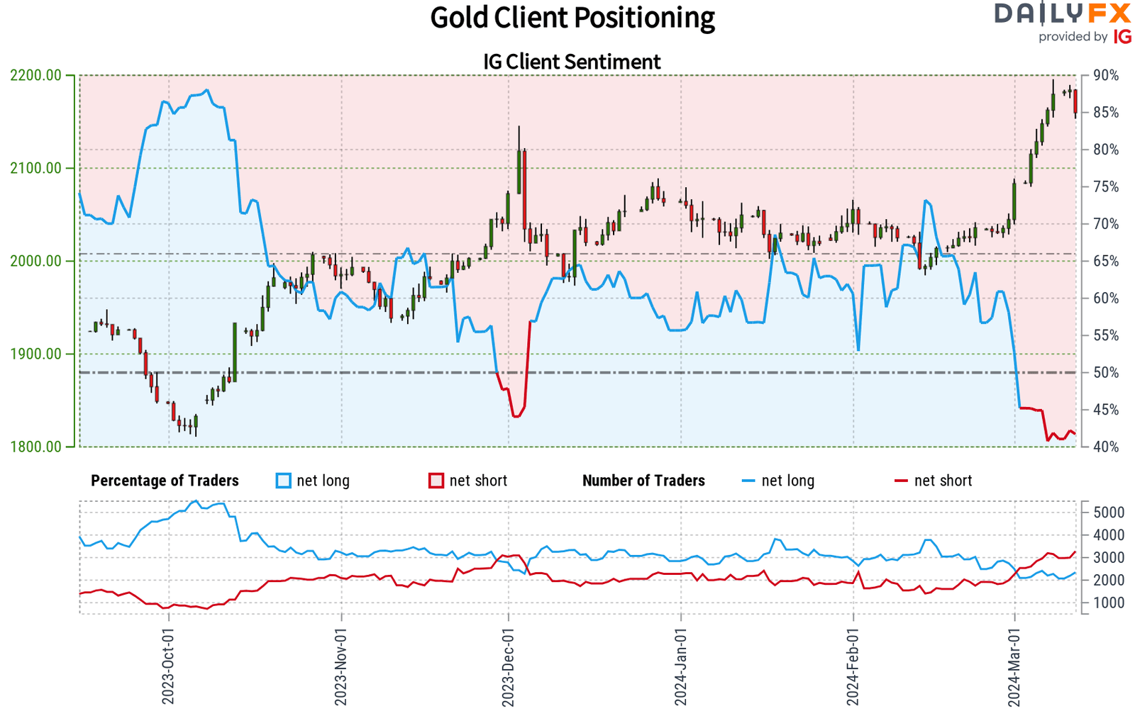 يكشف نشاط تداول التجزئة عن تحيز صاف قصير نحو الذهب، حيث تبلغ نسبة المراكز الهبوطية إلى الصعودية حاليا 1.47 إلى 1 اعتبارا من وقت متأخر من بعد ظهر يوم الثلاثاء.