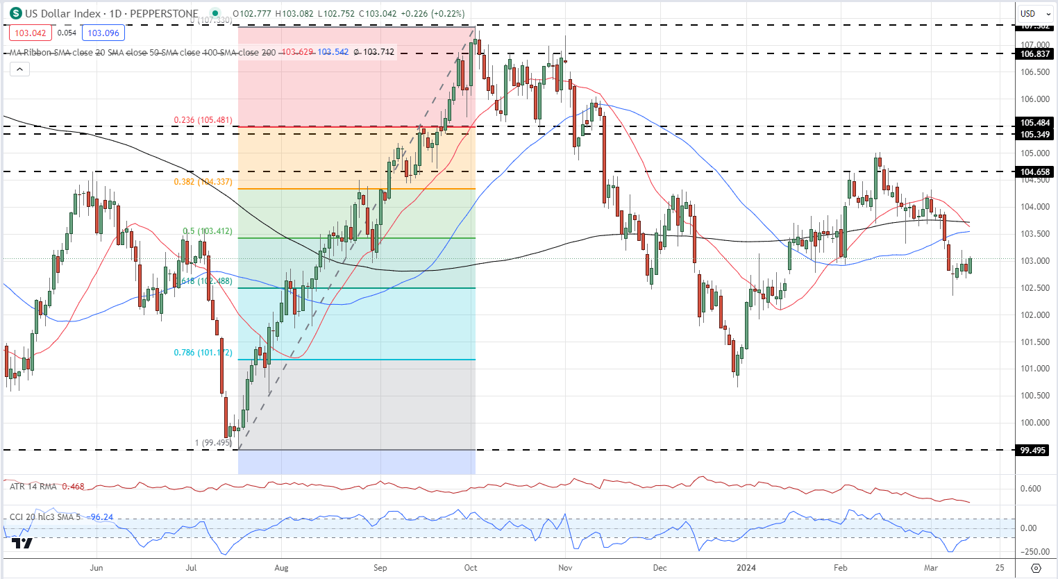 ترك التأثير الصافي لإصدارات البيانات الأمريكية اليوم تداول مؤشر الدولار الأمريكي على أي من 103.00 في تداول باهت. كان الدولار عالقا في نطاق تقييدي هذا الأسبوع قبل اجتماع اللجنة الفيدرالية للسوق المفتوحة الأسبوع المقبل.