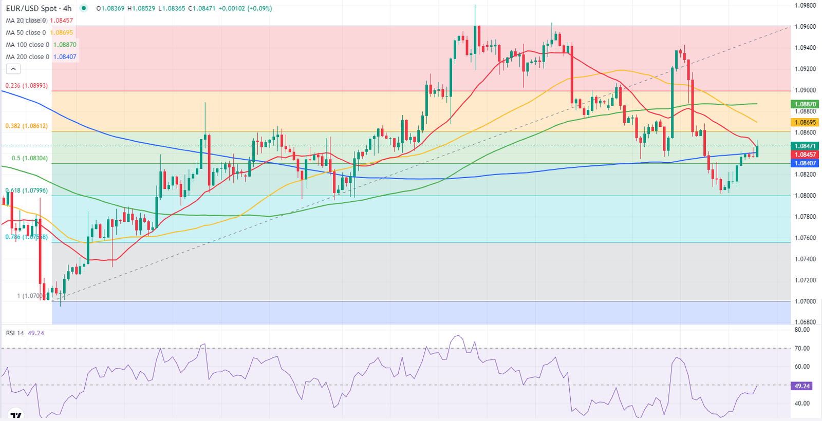 يمكن أن يواجه اليورو مقاومة عند منطقة 1.0860 قبل أن يستهدف منطقة 1.0890-1.0900.