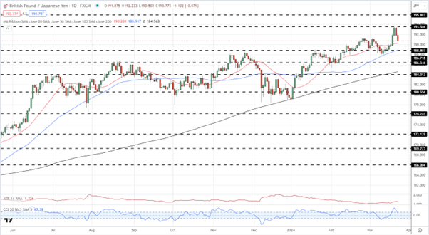 تختلف التوقعات الفنية لزوج الجنيه الإسترليني / الين الياباني عن GBP / USD و EUR / GBP وقد تكون التحركات المحتملة أكثر تقلبا في الأسابيع المقبلة. كان زوج العملة الجنيه الإسترليني/الين الياباني في اتجاه صعودي قوي منذ بداية عام 2023 مع وجود محركات مزدوجة لضعف الين المستمر ونوبات من قوة الجنيه الإسترليني. قد يفقد هذا الاتجاه زخمه قريبا حيث يتطلع بنك إنجلترا إلى خفض أسعار الفائدة في الأشهر المقبلة بينما رفع بنك اليابان للتو أسعار الفائدة ، وإن كان ذلك بمقدار 10 نقاط أساس فقط. من زاوية فنية ، يظل زوج الجنيه الإسترليني / الين الياباني يشير إلى الأعلى مع استمرار الزوج في تحقيق سلسلة من القيعان المرتفعة والارتفاعات الأعلى ، بينما يتداول GBP / JPY أيضا فوق جميع المتوسطات المتحركة الثلاثة البسيطة. لكي يتحول زوج العملة الجنيه الإسترليني/الين الياباني إلى الاتجاه السلبي، يلزم الاختراق دون القاع الأعلى الأخير عند 188. ستؤدي هذه الخطوة أيضا إلى التخلص من المتوسطات المتحركة لمدة 20 و 50 يوما. سيؤدي الاختراق السفلي بعد ذلك إلى ترك منطقة منتصف 186 و 184 كأهداف تالية.