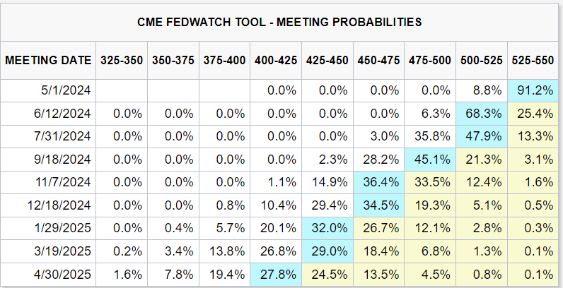 يوضح ما يلي أدناه احتمالات اجتماع اللجنة الفيدرالية للسوق المفتوحة الحالية للاجتماعات التسعة القادمة.