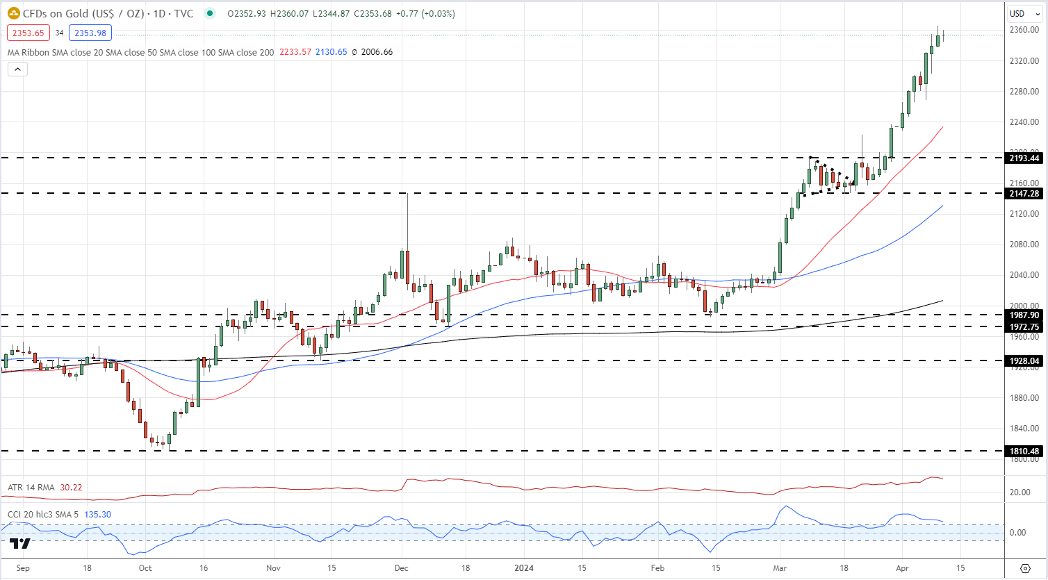 الرسم البياني اليومي لسعر الذهب - 10 أبريل 2024