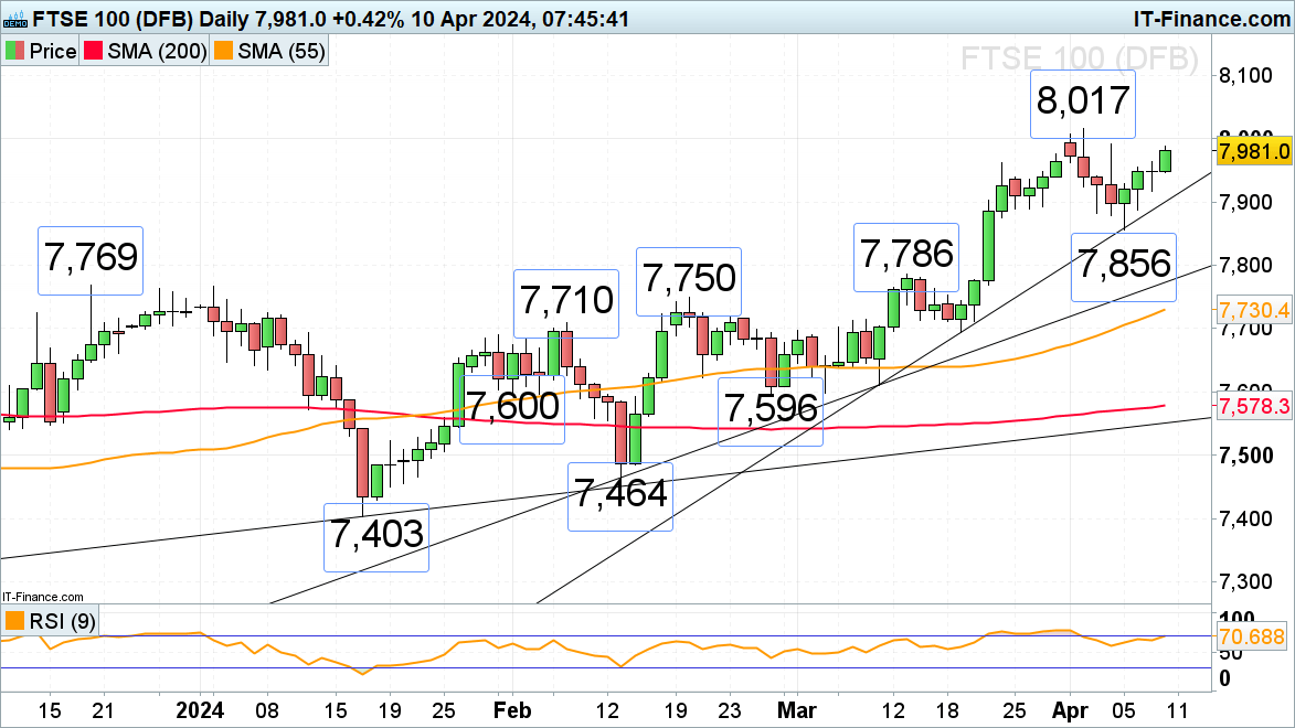 الرسم البياني اليومي لمؤشر فوتسي 100 - 10 أبريل 2024