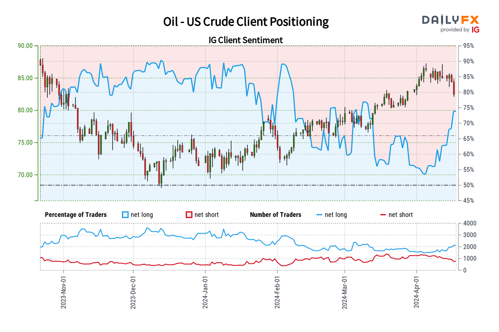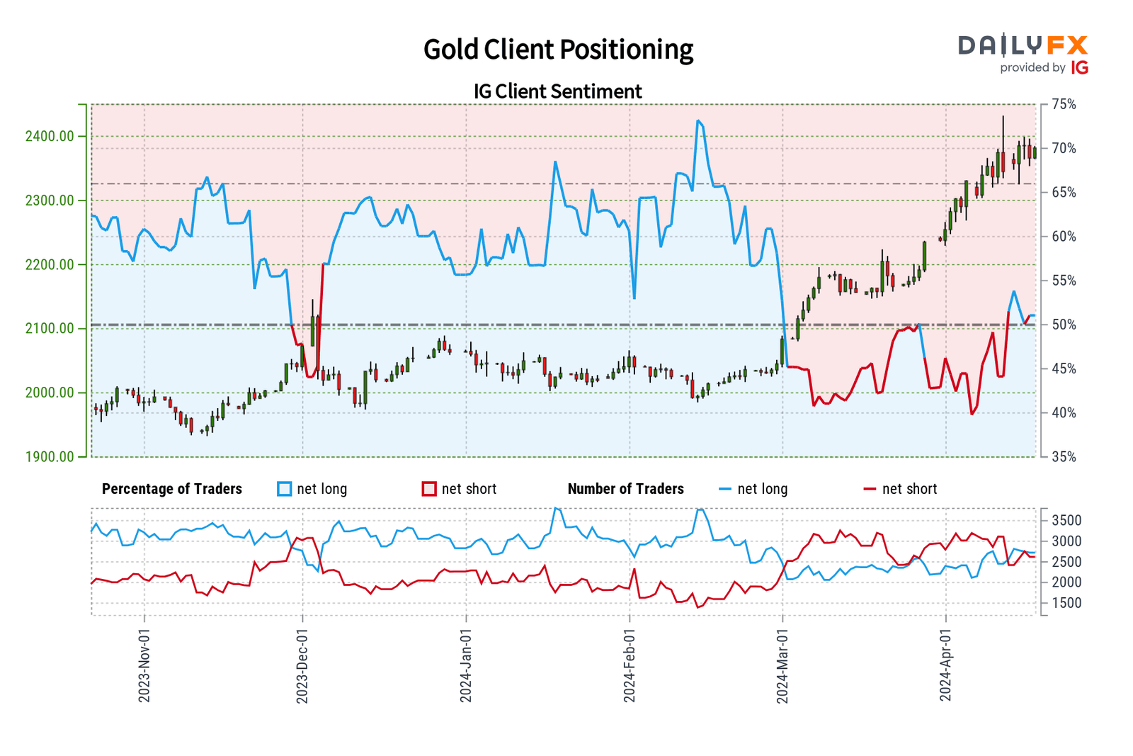 بطبيعة الحال ، الإشارات المعاكسة ليست طريقا مضمونا للنجاح. إنها توفر أكبر قيمة عند استخدامها جنبا إلى جنب مع استراتيجية تداول قوية. من خلال الجمع بين الرؤى المتناقضة والتحليل الفني والأساسي ، يطور المتداولون فهما أكثر دقة للقوى التي تشكل السوق - الديناميكيات التي قد تفوتها الجماهير بسهولة. دعونا نوضح هذا المفهوم من خلال فحص معنويات عملاء IG وكيف يمكن أن تؤثر على أسعار الذهب والفضة والنفط على المدى القريب.