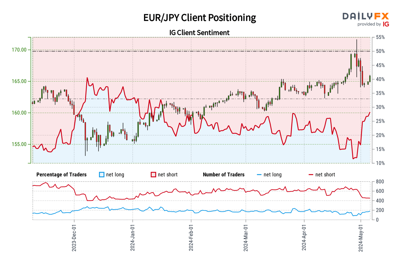 ومع ذلك ، فإن الاعتماد فقط على الإشارات المعاكسة ليس رهانا مؤكدا. تكمن قوتهم الحقيقية في كيفية استكمالهم لنهج تداول شامل. من خلال مزج الرؤى المتناقضة مع التحليل الفني والأساسي ، يكتسب المتداولون نظرة أعمق على ديناميكيات السوق - الفروق الدقيقة التي قد تتهرب من الجماهير. دعنا نتعمق في هذه الفكرة من خلال فحص معنويات عميل IG وما تشير إليه لثلاثة أزواج رئيسية من الين الياباني: USD / JPY و EUR / JPY و GBP / JPY.