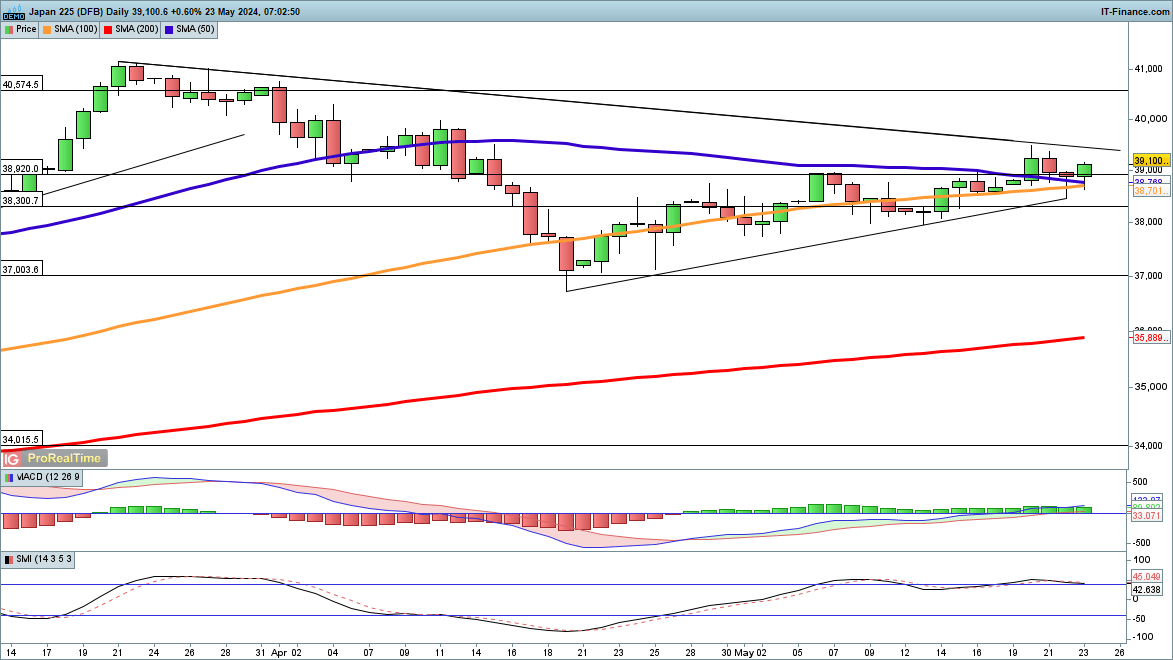 هذا يترك الحركة الصعودية من منتصف أبريل سليمة ، خاصة بالنظر إلى اختبار دعم خط الاتجاه من أدنى مستوى في أبريل. الإغلاق مرة أخرى فوق 39000 من شأنه أن يعزز المنظر الصعودي ، ويضع اختبارا لمقاومة خط الاتجاه من أعلى مستوياته في مارس.