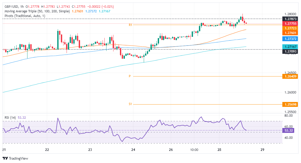 - حافظ زوج استرليني/دولار GBP/USD على مكاسبه عند 1.2786، مرتفعًا بنسبة 0.14٪ عن أعلى مستوى يومي.