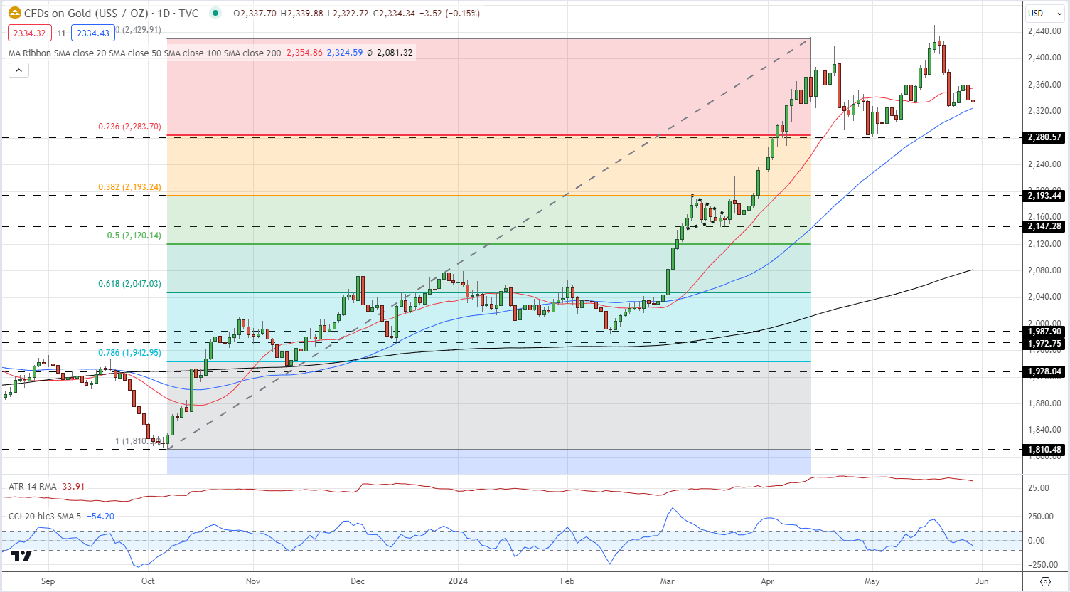 - يبدو أن الذهب مستعد لاختبار دعم فيبوناتشي.