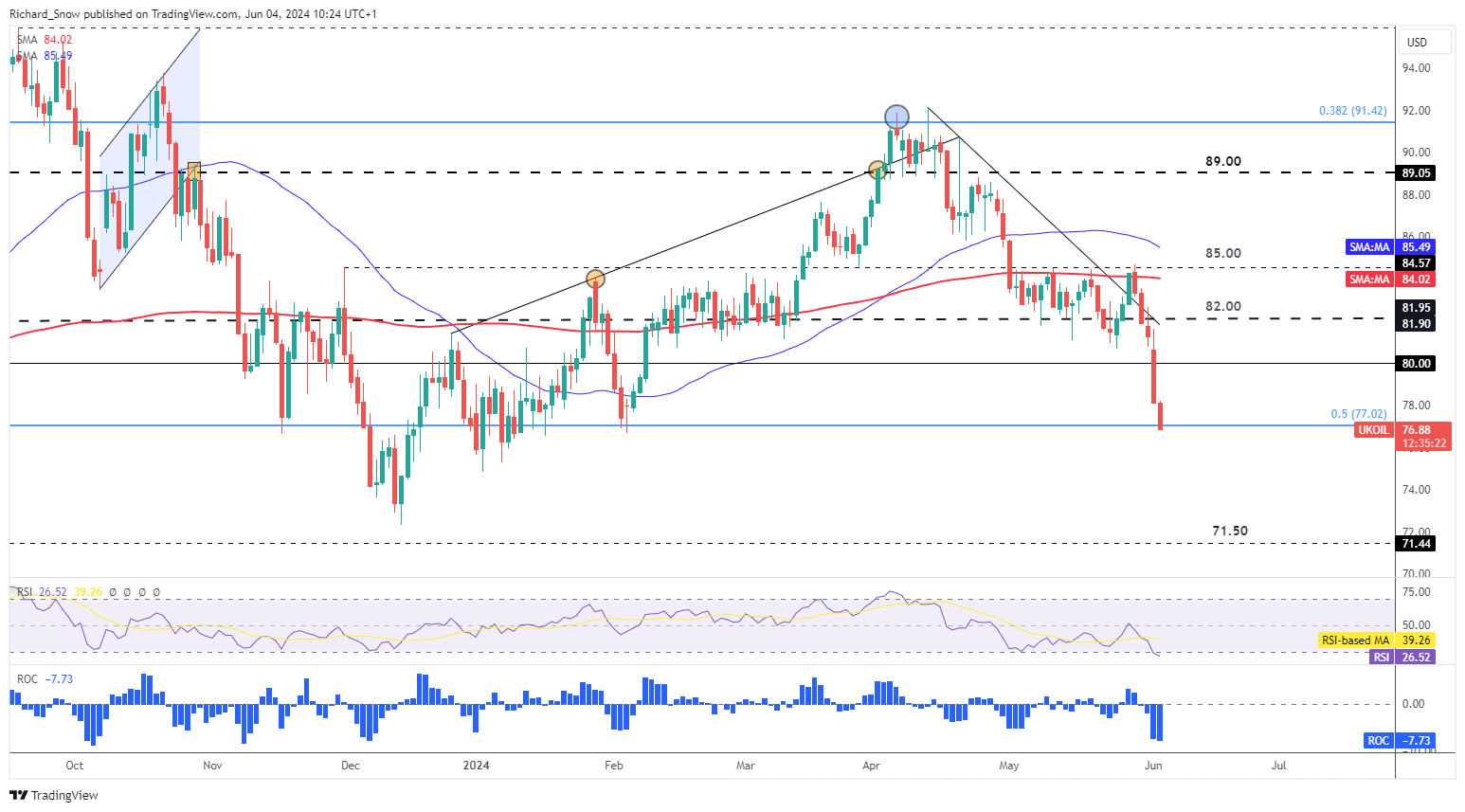 تخطط أوبك + لإعادة إدخال النفط مرة أخرى إلى السوق بوتيرة متواضعة ، لكن الحصص الخاصة بذلك لم يتم تحديدها بعد حيث من المحتمل أن يكون هذا موضوع الكثير من النقاش. ساعدت الأخبار في تمديد الحركة الهبوطية التي تلت ذلك بعد الرفض حول المتوسط المتحرك البسيط 200 عند 85 دولارا للبرميل.
