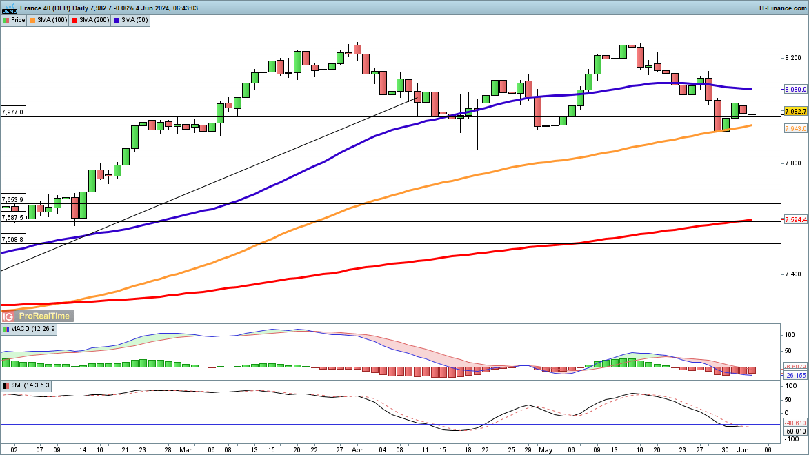 يجد السعر نفسه مرة أخرى دون 8000 ، وأدنى مستوياته في أبريل ومايو حول 7900 قريبة. قد يشير الإغلاق دون 7850 إلى أن تراجعا أعمق بكثير قد يكون قيد التشغيل ، وربما يستهدف المتوسط المتحرك البسيط ل 200 يوم ، والذي تم اختباره آخر مرة في يناير.