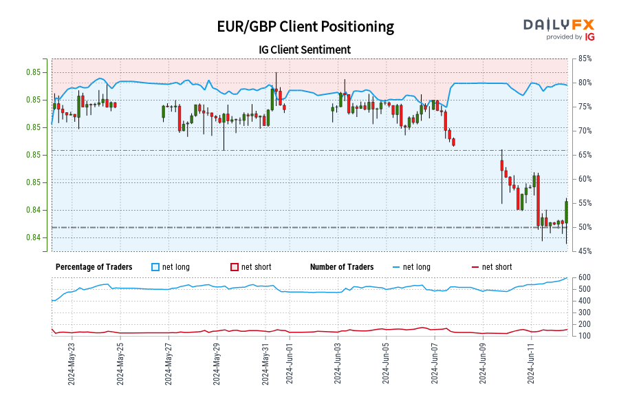 أصبح المتداولون أكثر صافي شراء من الأمس والأسبوع الماضي ، ومزيج من المعنويات الحالية والتغييرات الأخيرة يمنحنا تحيزا أقوى للتداول المعاكس الهبوطي لزوج يورو / جنيه إسترليني.