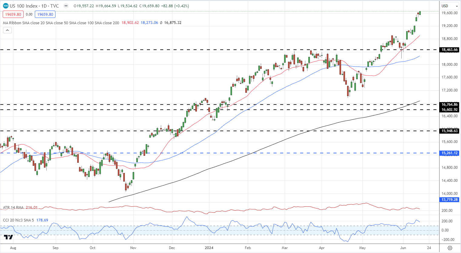 - يتطلع مؤشر ناسداك 100 إلى 20000 حيث يظل المشترون مسيطرين.