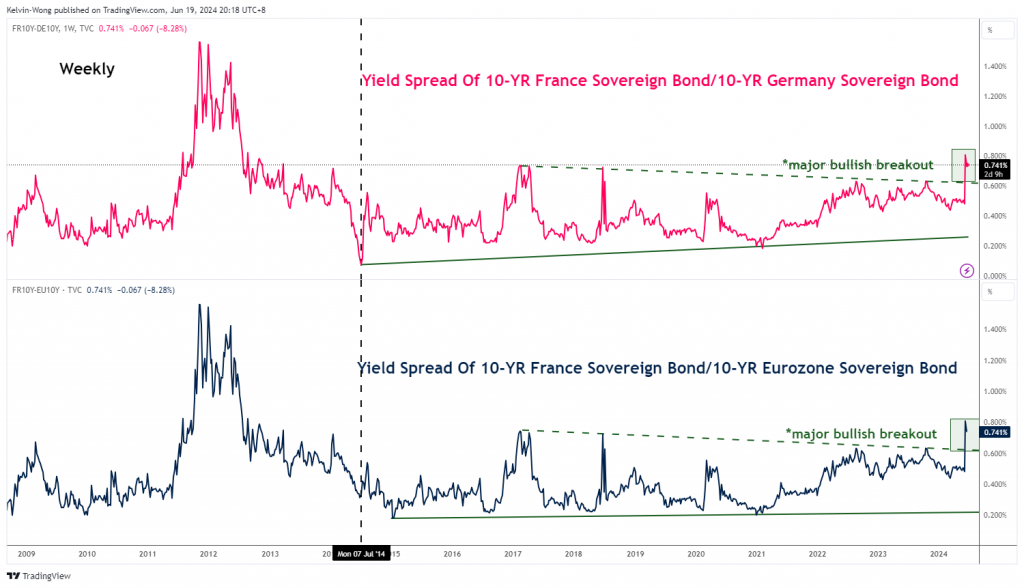 وقد يؤدي النفوذ السياسي المتزايد الذي اكتسبه حزب التجمع الوطني اليميني الفرنسي إلى إعاقة آفاق نمو الاقتصاد الفرنسي لأنه يميل إلى تفضيل سياسات مالية أكثر مرونة قد تؤدي إلى ارتفاع عجز الميزانية مما قد يؤدي في النهاية إلى زيادة الضرائب في المستقبل.