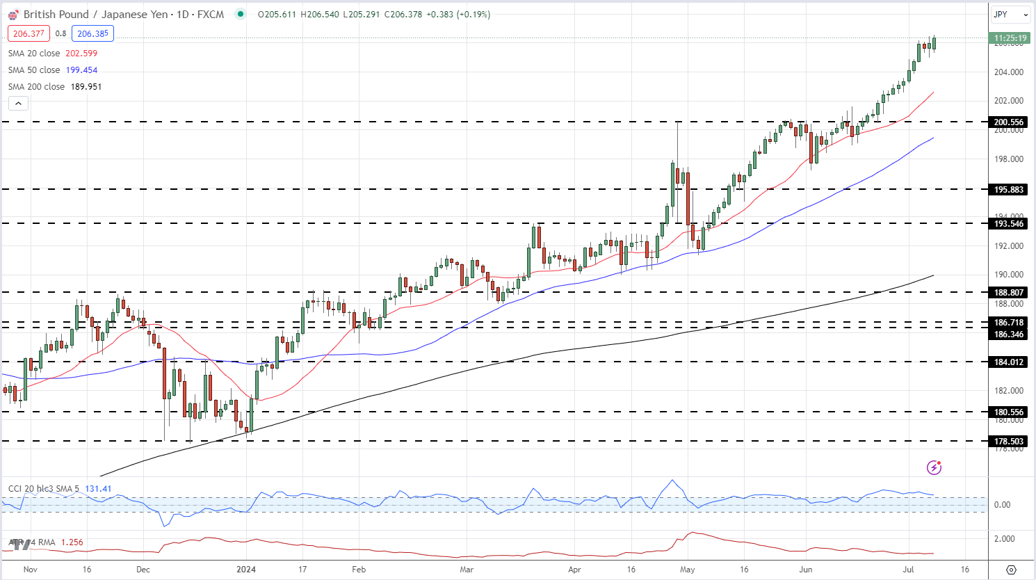 مخطط السعر اليومي لزوج الجنيه الإسترليني / الين الياباني