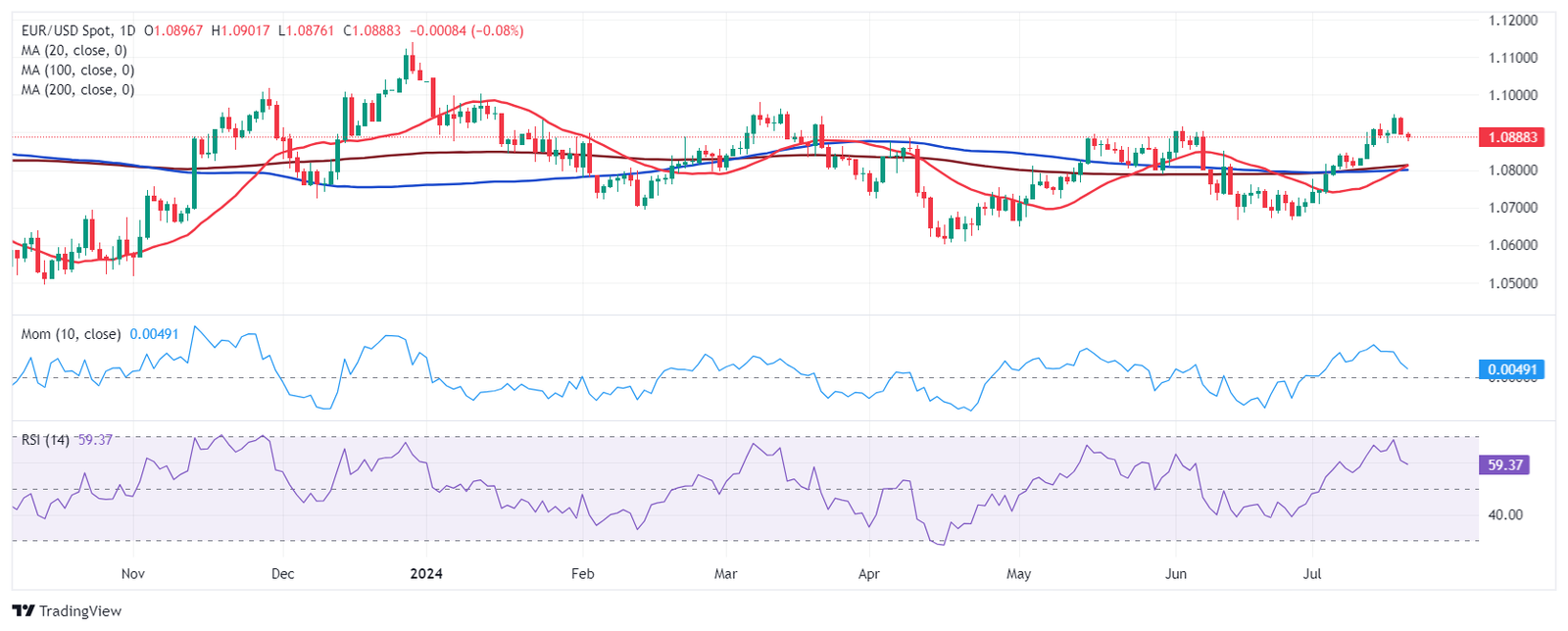 من وجهة نظر فنية، يقف زوج يورو/دولار EUR/USD عند الطرف العلوي من نطاقه الأخير، ولا تزال المخاطرة تميل إلى الاتجاه الصعودي. ووفقا للرسم البياني الأسبوعي، يرتفع الزوج فوق مستوى المتوسطين المتحركين البسيطين 20 و100 (SMAs)، اللذين يفتقران إلى القوة الاتجاهية. في الوقت نفسه، يوفر المتوسط المتحرك البسيط 200 الهابط بشكل معتدل مقاومة ديناميكية قرابة المستوى 1.1080. يتجه مؤشر الزخم صعودا فوق خط 100، بينما تحول مؤشر القوة النسبية (RSI) إلى الاستقرار قرابة 55، مما يشير إلى أنه بينما يحتفظ المشترون بالسيطرة، فقد انخفض الاهتمام. ومع ذلك، لا توجد علامات فنية تشير إلى أن الزوج قد يتخلى عن اتجاهه الحالي.