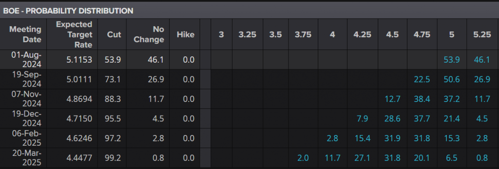 • يقوم المشاركون في السوق بتسعير فرصة بنسبة 53٪ لخفض أسعار الفائدة في أغسطس ، لكن الاقتصاديين الذين شملهم الاستطلاع يتوقعون فرصة بنسبة 80٪ لخفض أسعار الفائدة.