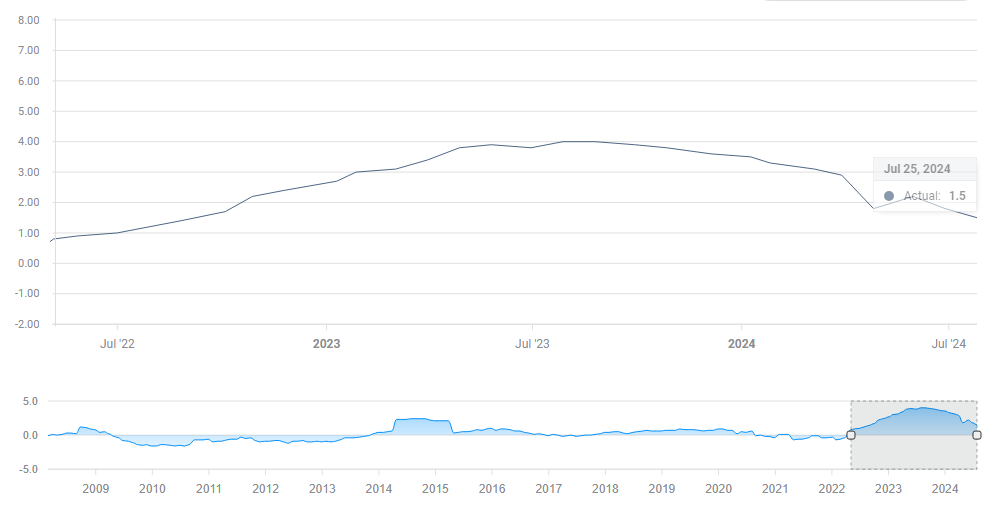 الأربعاء، الساعة 18:00 بتوقيت جرينتش، مؤتمر صحفي الساعة 18:30 بتوقيت جرينتش. قرار ما قبل خفض سعر الفائدة؟ هذا ما تتوقعه الأسواق من الاحتياطي الفيدرالي. كان التضخم في الولايات المتحدة يتراجع في الربع الثاني، مما يمنح بنك الاحتياطي الفيدرالي مزيدًا من الثقة لاتخاذ قرار بخفض أسعار الفائدة. في حين أن هذا لن يحدث الآن، فمن المرجح أن يشير رئيس مجلس الاحتياطي الفيدرالي جيروم باول وزملاؤه إلى أن التحرك في سبتمبر أمر متوقع الحدوث.