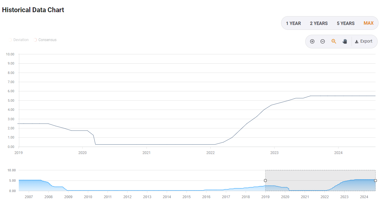 بصرف النظر عن كونها أول خطوة من نوعها منذ أكثر من أربع سنوات، فإن خفض سعر الفائدة سيأتي بعد سلسلة من الزيادات الحادة خلال عامي 2022 و2023. سندخل في هذا لاحقًا، لكن من المحتمل أن يمثل خفض الفائدة نقطة تحول، تمثّل نهاية دورة من الزيادات وبداية دورة جديدة يمكن أن تنخفض فيها معدلات الفائدة باستمرار.