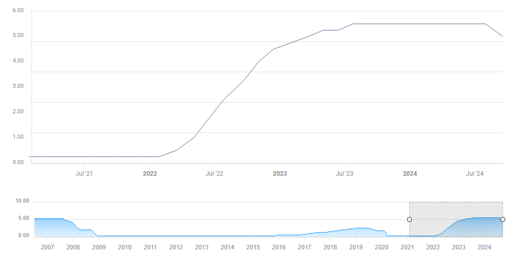 بالإضافة إلى القرار، يصدر بنك إنجلترا أيضًا تقرير السياسة النقدية الفصلي (MPR). بالنظر إلى التطورات الاقتصادية الأخيرة، من المتوقع أن يكون مسار التضخم أقل. أي توقعات متفائلة بشكل مفاجئ بشأن التضخم من شأنها أن تؤدي إلى ارتفاع قوي للجنيه الإسترليني.