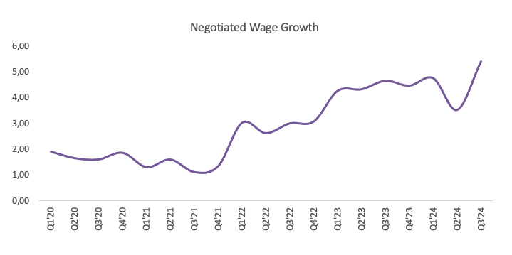 وفي الوقت نفسه عبر المحيط الأطلسي، لا تزال السردية المتشائمة تهيمن بين صناع السياسات في البنك المركزي الأوروبي، على الرغم من ارتفاع المؤشر المنسق لأسعار المستهلك (HICP) في أكتوبر/تشرين الأول وارتفاع نمو الأجور المتفاوض عليها في الربع الثالث.