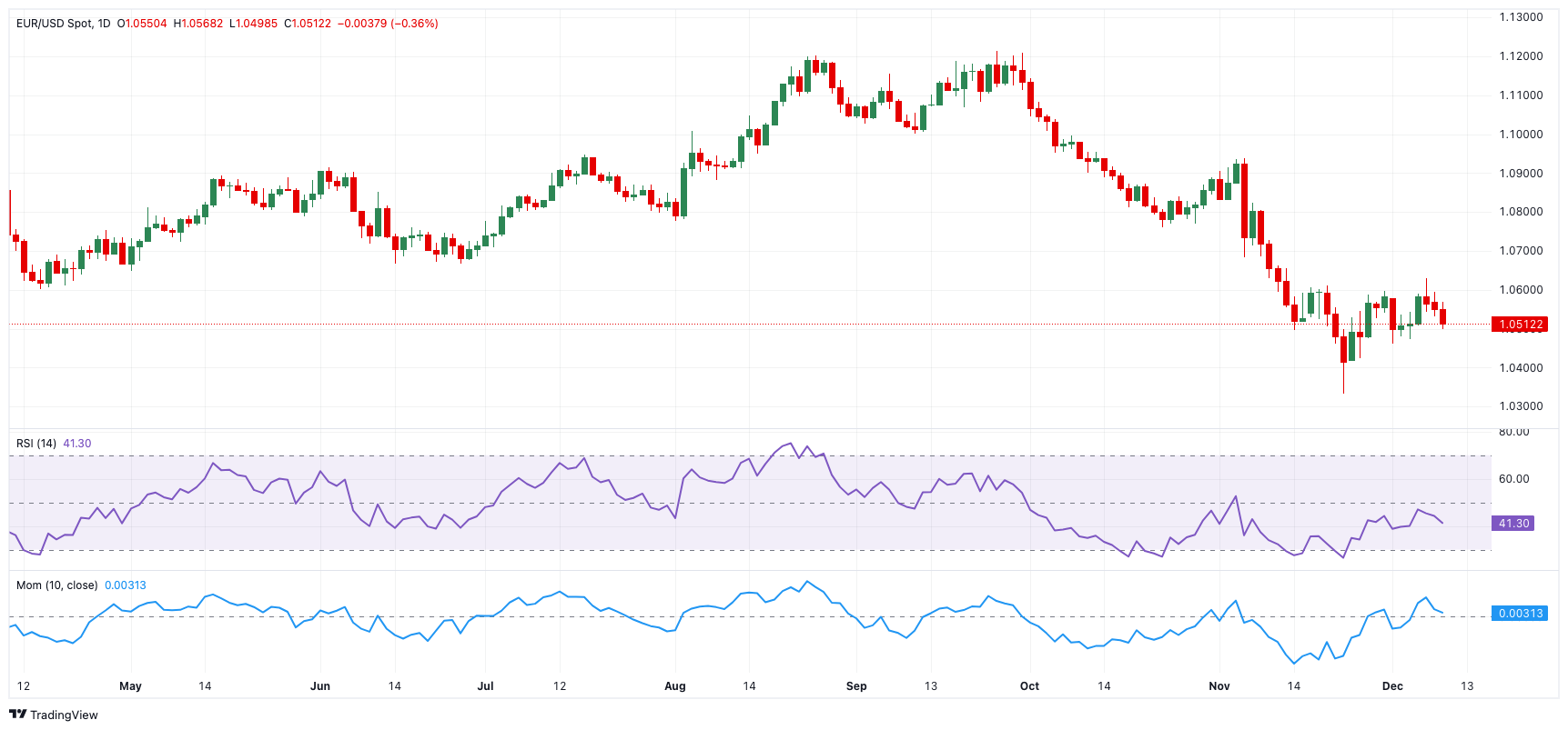 عبر المحيط الأطلسي، من المتوقع على نطاق واسع أن يخفض البنك المركزي الأوروبي أسعار الفائدة بمقدار ربع نقطة مئوية أخرى في اجتماعه في وقت لاحق من الأسبوع. لا يزال التضخم مصدر قلق مستمر، حيث كشفت بيانات نوفمبر عن ضغوط الأسعار المتجددة في ألمانيا ومنطقة اليورو، مصحوبة بارتفاع الأجور. في تصريحاتها الأخيرة، أقرت رئيسة البنك المركزي الأوروبي كريستين لاجارد بالمخاطر السلبية للنمو لكنها حافظت على موقفها المحايد، ولم تقدم سوى القليل من الوضوح بشأن التحركات المستقبلية.