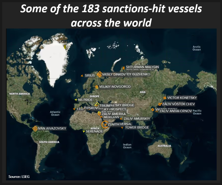 ومع ذلك ، لم يتم تأكيد ذلك من قبل القنوات الرسمية. وتقوم العديد من الناقلات المدرجة في العقوبات الجديدة بنقل النفط إلى الهند والصين. حدث هذا التحول بعد أن أعادت العقوبات الغربية وسقف السعر الذي حددته مجموعة السبع في عام 2022 توجيه تجارة النفط الروسية من أوروبا إلى آسيا. كما أن بعض هذه السفن تحمل نفطا من إيران، التي تخضع أيضا للعقوبات.