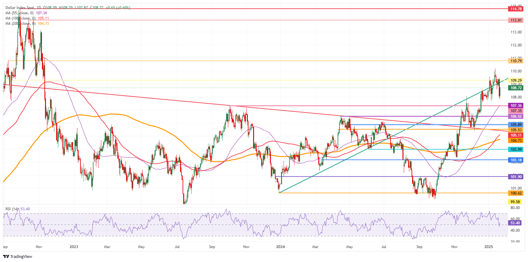 - يتداول مؤشر الدولار الأمريكي (DXY) على ارتفاع مرة أخرى مع التركيز على الحاجز السعري 109.00.