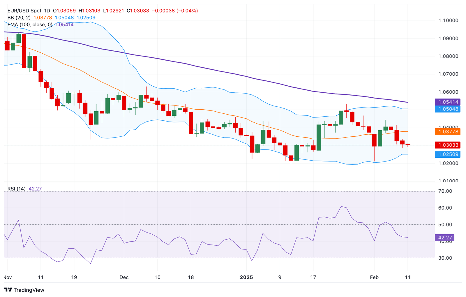 يظل زوج يورو/دولار EUR/USD ضعيفًا بالقرب من منطقة 1.0305 خلال جلسة التداول الأوروبية المبكرة يوم الثلاثاء.