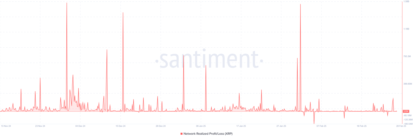 مقياس الربح/الخسارة المحققة على الشبكة في عملة ريبل XRP. المصدر: Santiment