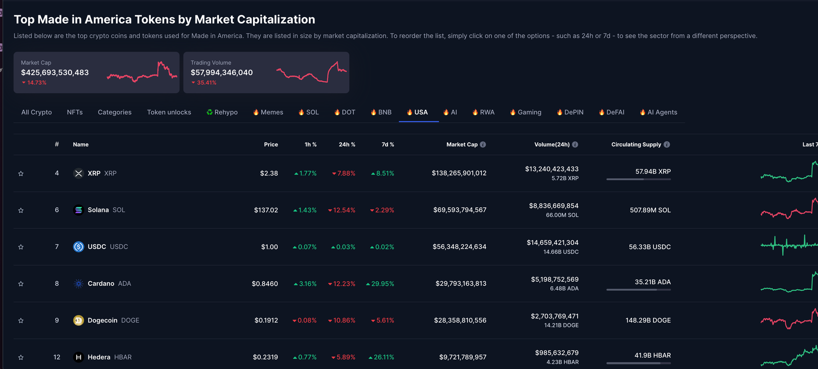 • انخفضت العملات المصنوعة في الولايات المتحدة بنسبة 14.75% يوم الثلاثاء، مما يعكس خسائر إجمالية قدرها 63 مليار دولار، وفقًا لبيانات كوين ماركت كاب.