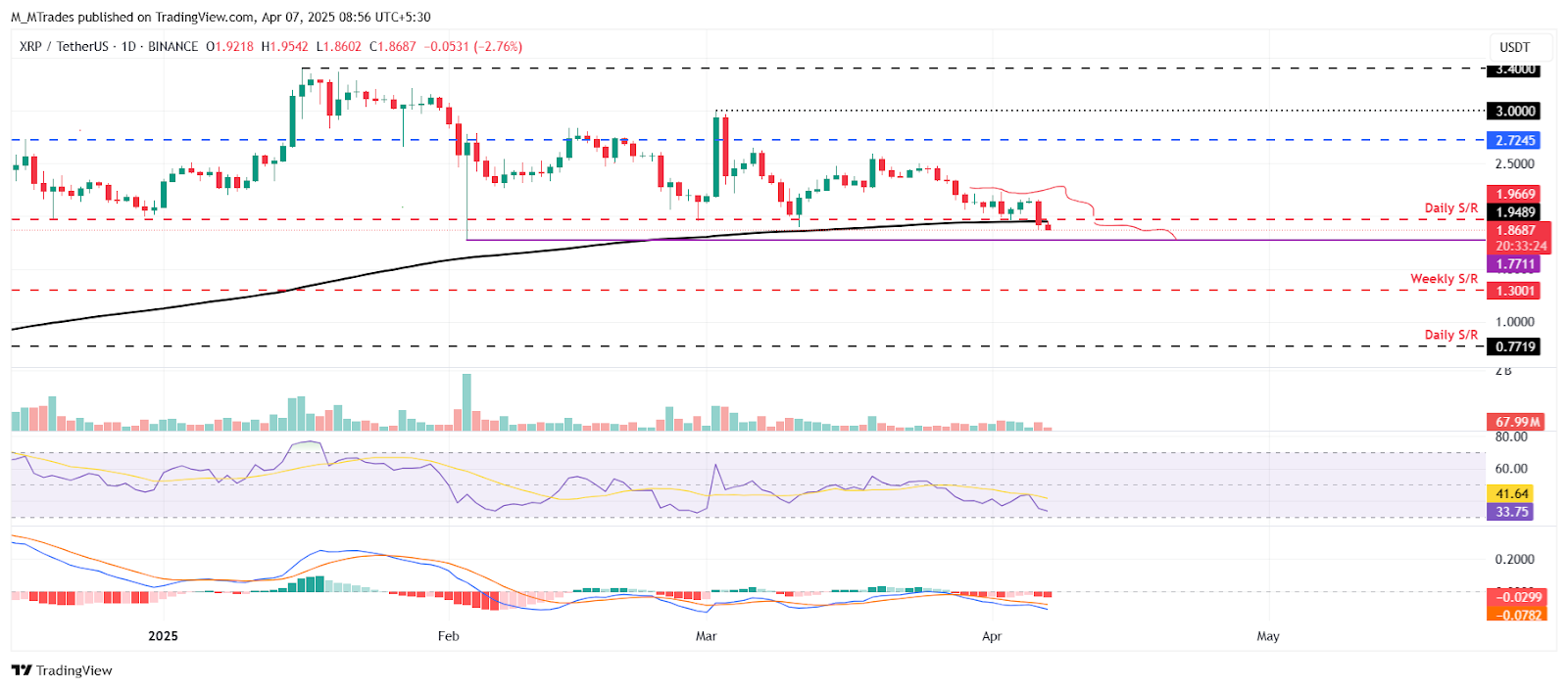 - تكسر عملة ريبل XRP مستوى الدعم عند منطقة 1.96 دولار، مستهدفة أدنى مستوياتها السنوية.