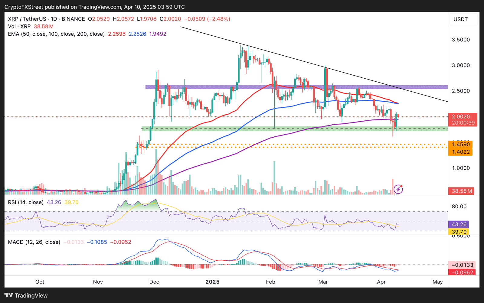 - استعادت عملة ريبل XRP منطقة 2 دولار الحاسمة بعد أن قام الرئيس ترامب بتغيير موقفه بشأن التعريفات الجمركية المتبادلة.