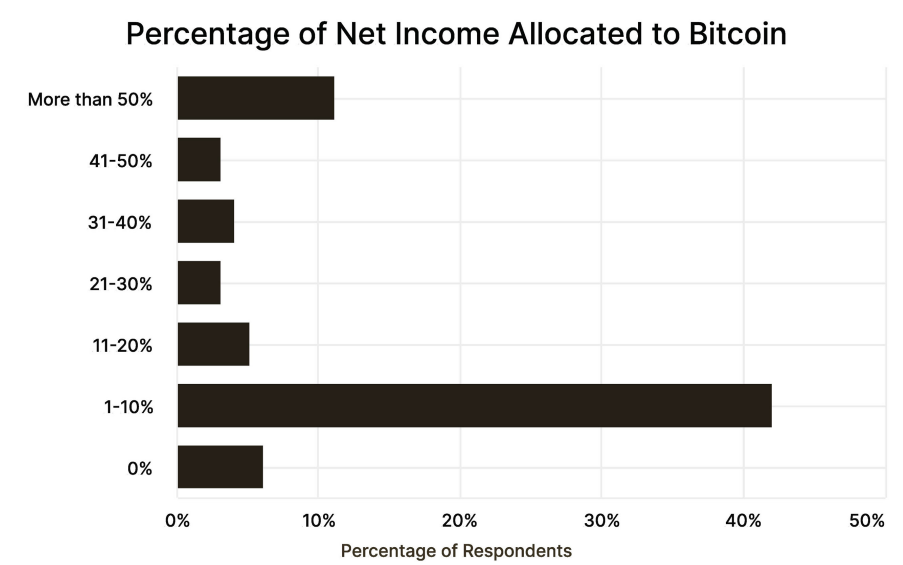أصدرت شركة ريفر (River) التي تقدم خدمات البيتكوين المالية تقريرًا بحثيًا هذا الأسبوع، والذي يوضح أن العديد من الشركات تخصص أكثر بكثير من 1% افتراضي من أموالها للبيتكوين. الشركات التي تستخدم ريفر تخصص في المتوسط 22% من صافي دخلها، وفقًا لاستطلاع أُجري في يوليو/تموز 2025. وتبلغ النسبة المتوسطة 10%، مما يشير إلى تزايد الاعتماد من القاعدة الشعبية.