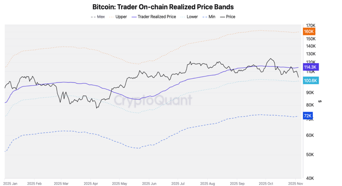 سلط تقرير كريبتو كوانت CryptoQuant الأسبوعي يوم الأربعاء الضوء على أن الأساسيات الخاصة بالبيتكوين لا تزال ضعيفة، حيث انخفض السعر دون 100 ألف دولار لأول مرة منذ شهور. أضاف التقرير أن البيتكوين تحوم الآن بالقرب من مستويات دعم حرجة، وكسرها قد يؤدي إلى تصحيح حاد في السوق.