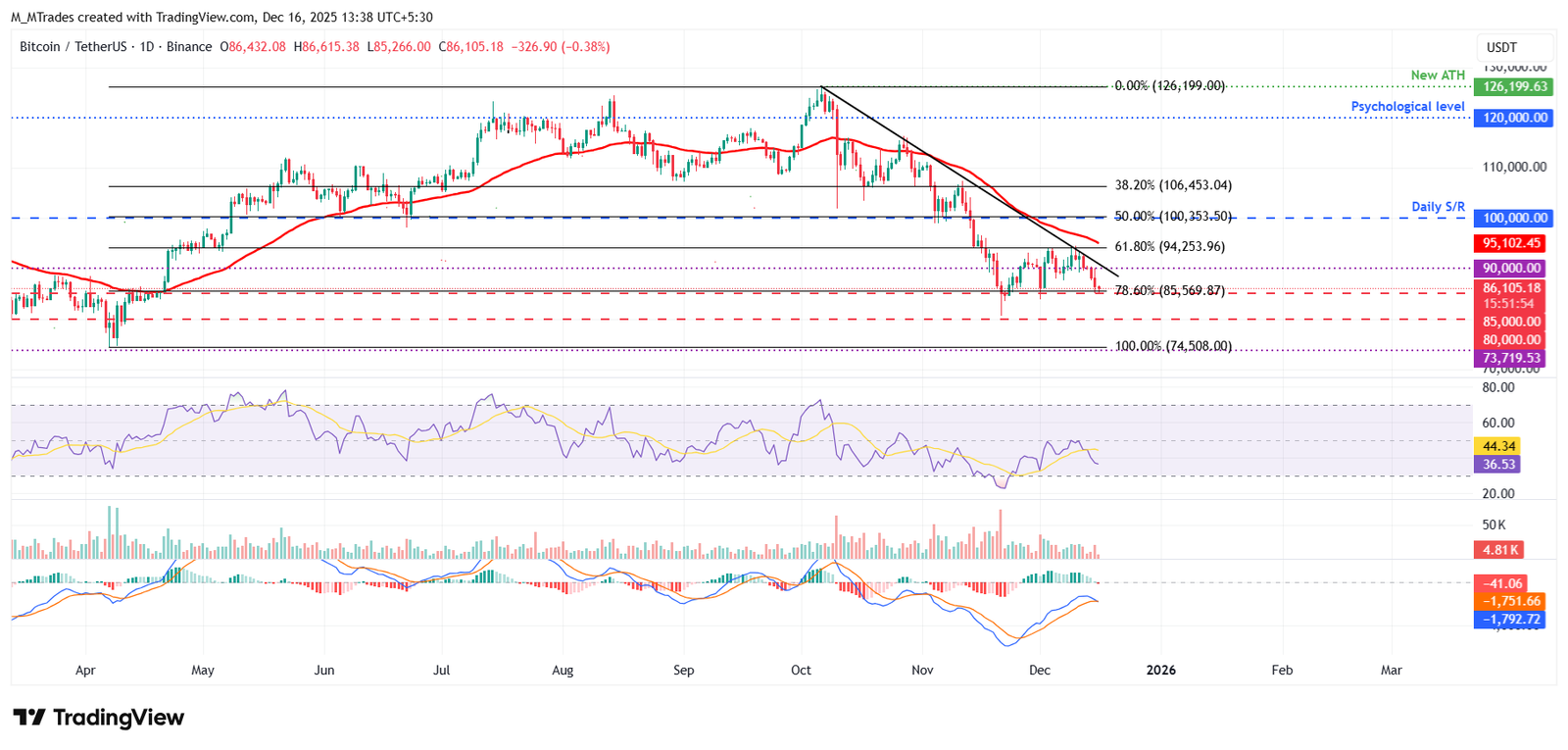 تواصل البيتكوين (BTC) التصحيح السعري، حيث تتداول دون 86000 دولار في وقت كتابة هذا التقرير يوم الثلاثاء، مسجلة خامس يوم على التوالي من الانخفاض. تظهر معنويات مختلطة بين المستثمرين المؤسسيين، حيث شهدت صناديق البيتكوين المتداولة في البورصة تدفقات خارجية بينما أضافت شركة ستراتيجي (Strategy) عملات بيتكوين إلى احتياطياتها. على الرغم من الضعف في الحركة السعرية الحالية، يمكن أن يساعد تحسن ظروف السيولة في الولايات المتحدة في الحد من المزيد من الانخفاضات على المدى القريب.