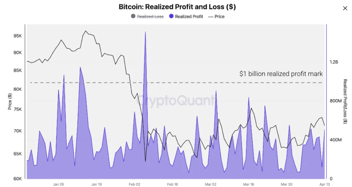 يخلص محلل CryptoQuant إلى أن "هذا القراءة المعتدلة نسبيًا تشير إلى أن جني الأرباح لا يزال في مراحله الأولى. حاملو البيتكوين الذين تراكموا بين 65,000 و76,000 دولار هم الآن في ربح، مما يخلق تجمعًا متزايدًا من الأرباح غير المحققة. في موجات الارتداد في الأسواق الهابطة، تزامن ارتفاع الأرباح المحققة فوق 1 مليار دولار تاريخيًا مع، أو سبق قليلاً، قمم الأسعار المحلية. إذا استمر البيتكوين فوق 76,000 دولار أو دفع أعلى نحو سعر التداول المحقق للمتداولين عند 76,800 دولار، فقد تتسارع الأرباح المحققة اليومية بشكل ملحوظ نحو وفوق علامة 1 مليار دولار، مما يضيف مزيدًا من ضغط البيع ويزيد من احتمال توقف الارتفاع أو انعكاسه."